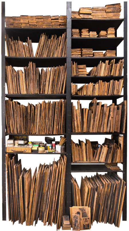 Die als Druckstock verwendeten Bretter sind aus Birnbaumholz gefertigt, seltener aus Lindenholz. Die umgekehrt auf die Holzfläche übertragene Vorlage wurde mit Hohleisen für den Hochdruck bearbeitet, wobei die nicht druckenden Stellen als Vertiefung herausgeschnitten werden mussten. Die meisten Bretter sind beidseitig bearbeitet. Ein Holzstock konnte auch abgehobelt werden, um einer neuen Arbeit zu dienen. Auf den meist schmalen Brettern mussten grosse Kompositionen in einzelne Formen zerteilt werden, um im Druck dann wieder zusammengesetzt zu werden. Als weiterer Schritt dienten einzelne Holzstöcke als Formenvorrat von Motiven, die nach Belieben zusammengesetzt und künstlerisch für neue Kompositionen verwertet werden konnten.