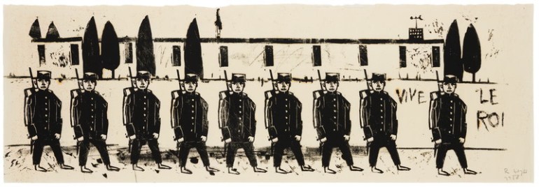 Robert Wyss, «Vive le roi» (1958) 17/07/2024 Verfasst von tekooptehuur Robert Wyss, «Vive le roi» (1958) Holzschnitt (Japanpapier); Künstlerdruck; 32 × 93 cm