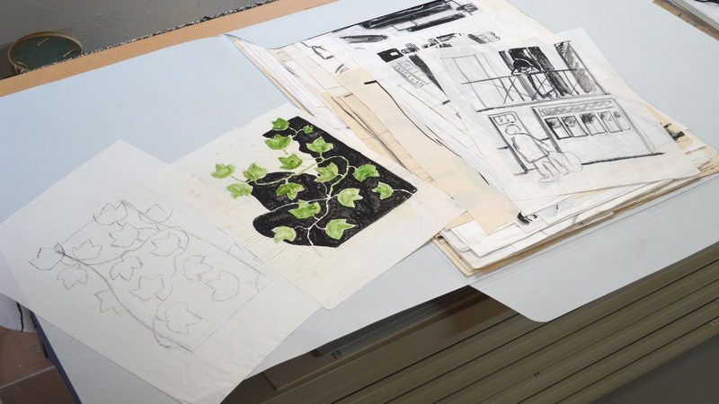 Eine wichtige Rolle im künstlerischen Schaffensprozess spielten die Entwürfe. Mit diesen Vorzeichnungen prüfte der Künstler zuerst die technische Verwendbarkeit und den Aufbau eines geplanten Bildes. Die in Originalgrösse auf Bäckerpapier mit Gouache ausgeführten Holzschnittvorlagen dienten dazu, das fertige Motiv seitenverkehrt auf den Holzstock zu pausen.